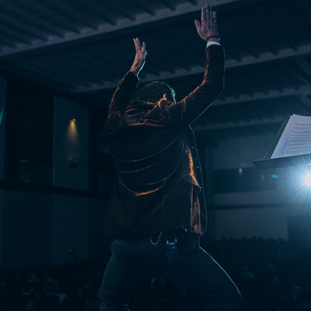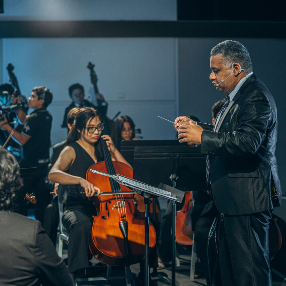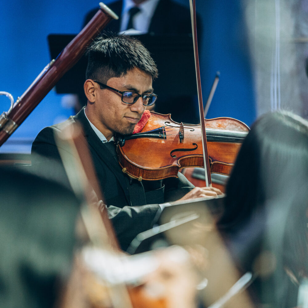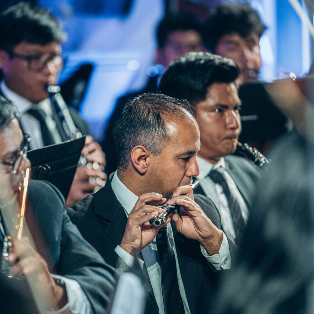 Trabajé junto al fotógrafo Bruno Dávila, colaborando en la planificación y ejecución del registro visual. Juntos nos encargamos de documentar no solo la presentación final, sino también el proceso detrás del evento, incluyendo ensayos, preparación escénica y la interacción entre músicos, directores y artistas invitados.
