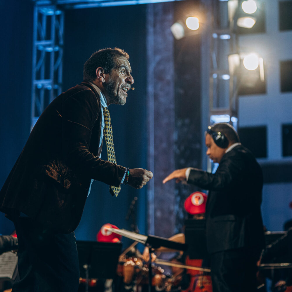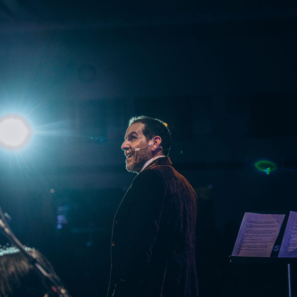 Fui parte del equipo encargado de la cobertura fotográfica de un concierto sinfónico especial en el que participó Pablo Saldarriaga, reconocido actor y director, como narrador principal. Este evento fusionó música clásica con interpretación escénica, generando una experiencia multisensorial que requería un enfoque fotográfico sensible, artístico y técnicamente preciso.